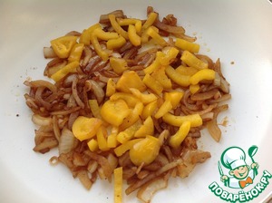 В сковороду, в которой обжарили свинину, выложить подготовленные овощи, добавив при необходимости растительное масло, и обжарить 2-3 минуты.