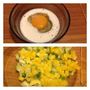Яйца взбить с молоком, солью и перцем в пену.