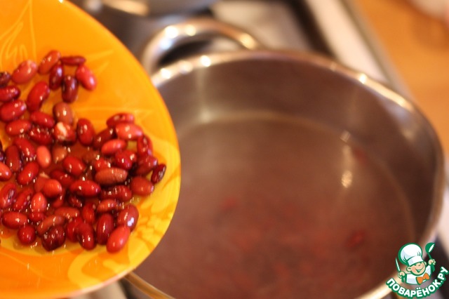 Отварить фасоль до готовности ( около 1 часа) -