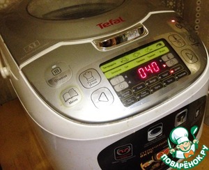 Чашу мультиварки смазать маслом. Вылить в чашу тесто. Закрыть крышку и поставить режим "Десерт" на 40 минут. Готовить до окончания программы