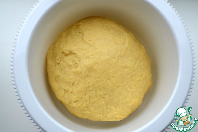 Замесить не очень крутое тесто. Поместить в емкость, накрыть пленкой и поставить в холодильник на 2 часа.