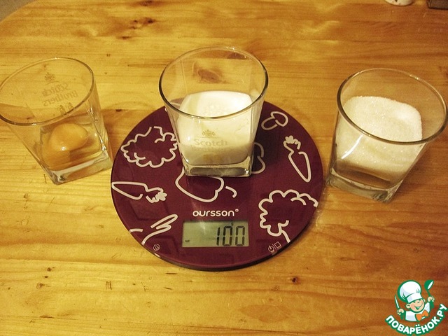 Отвешиваем все компоненты, яйцо используем полностью, то есть, не делим на желток и белок.