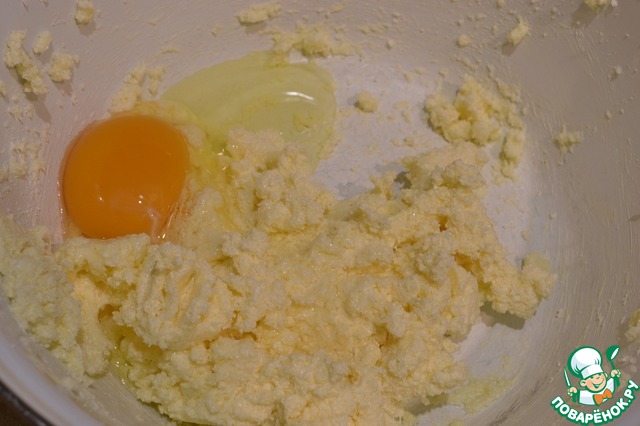 Смешиваем 80 г сахара с размягченым маргарином и ванильным сахаром, щепоткой соли, растираем