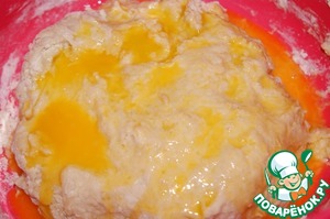 Смешать муку, сахар, соль, дрожжи, ванильный сахар и цедру. Влить в мучную смесь молоко, добавить майонез и замесить тесто.