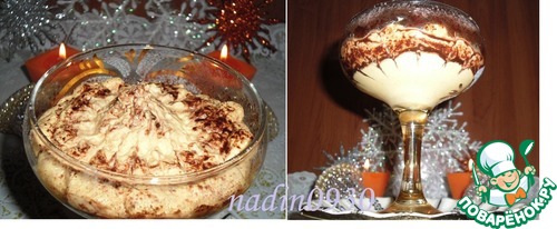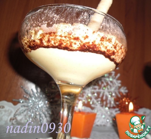 В креманку выложить ровный слой крема. Через сито обсыпать сухой смесью какао и сах. пудры всю поверхность крема,!!! будьте аккуратны!!!, ЧЕМ СИЛЬНЕЕ, ТЕМ ШОКОЛАДНЕЕ, хорошо "попудрить" бока креманки внутри. Выложить второй слой крема произвольно или через "корнетик" (кулёк из пекарской бумаги). Вновь припудрить смесью из сита.