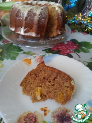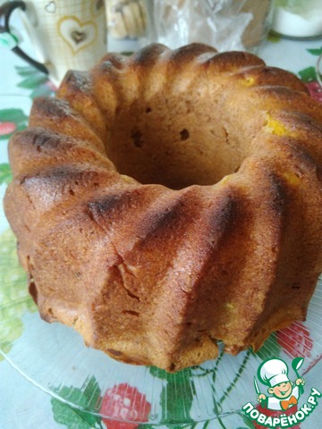 Отправляем форму в разогретую духовку на 1 час 10 мин. Готовность проверить лучиной, сухая, значит кекс готов.
