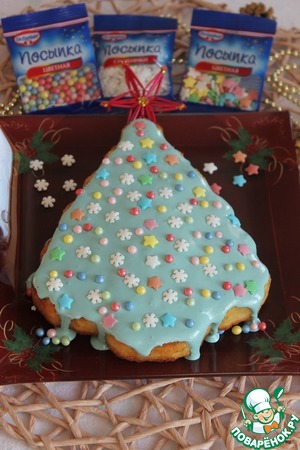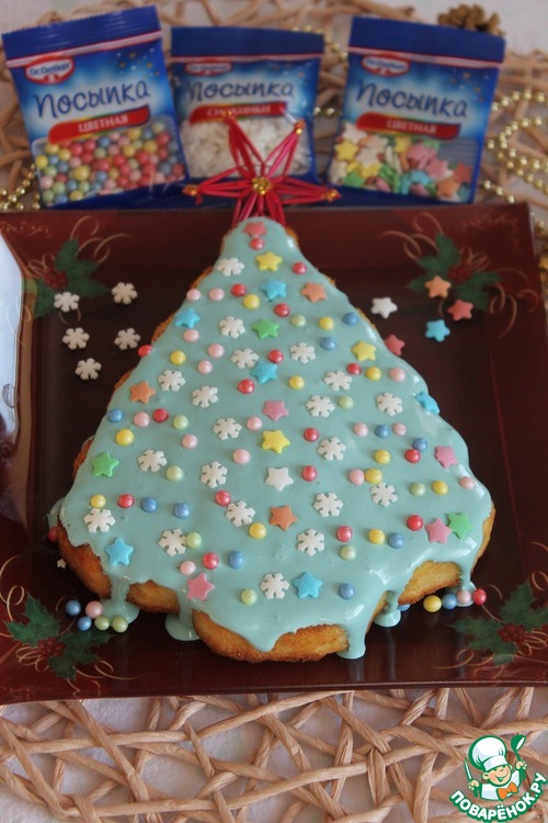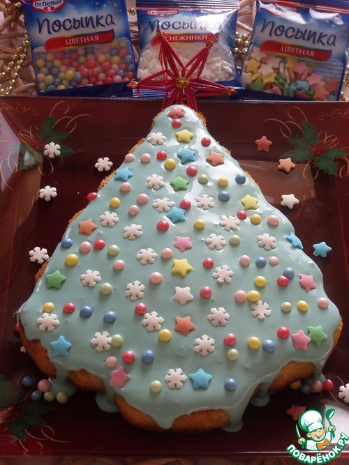 Остужаем кекс. Выкладываем на блюдо, покрываем глазурью и украшаем сахарными посыпками ТМ "Dr.Oetker".