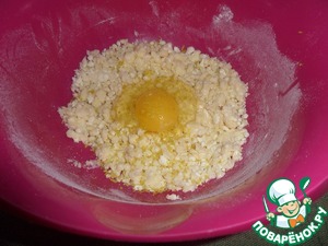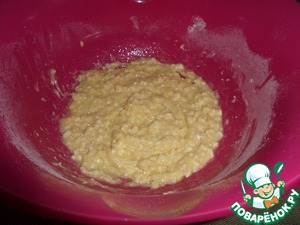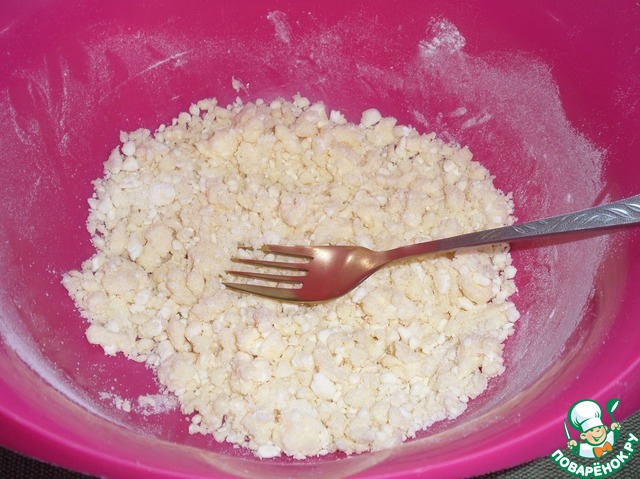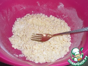 Перетираем ингредиенты с помощью вилки до состояния крошки.