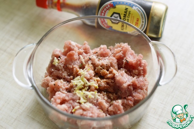 • В фарш добавить измельченный чеснок, соевый соус и любимые травы.