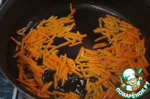 В глубоком сотейнике разогреть растительное масло, всыпать морковь, слегка обжарить.