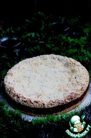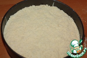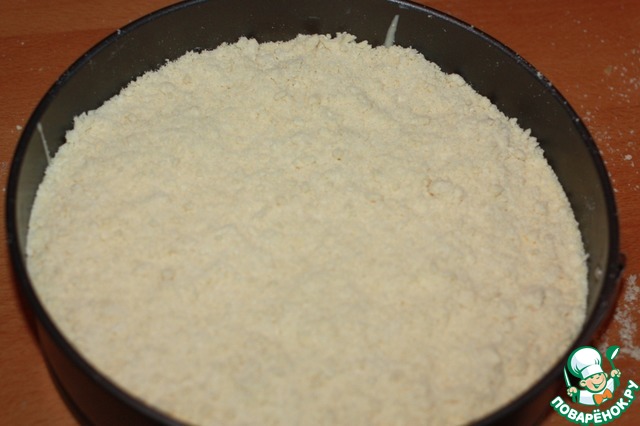 Вылить начинку и сверху неё остальную 1/3 крошки