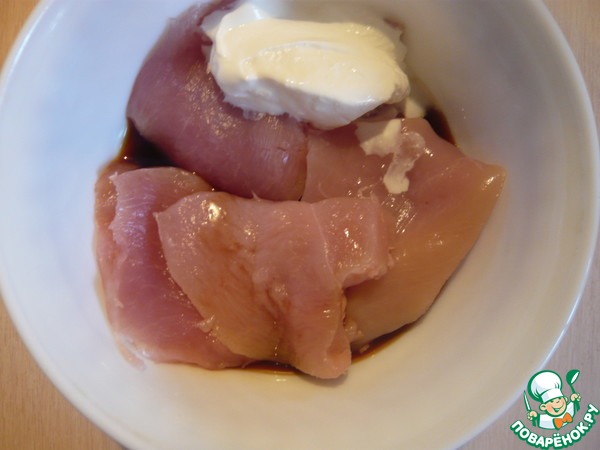 Филе заливаем соусом и 10 ст. л. майонеза (сметаны или йогурта).