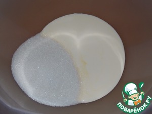 Маргарин растопить, добавить сахар. Взбить до однородной массы.