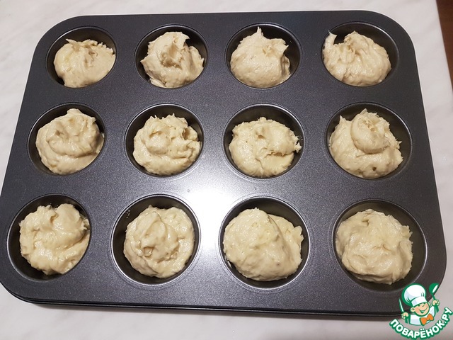 Раскладываем по формочкам. Я использую и железные, и силиконовые. Ничем не смазываю. Учитывать, что эти капкейки хорошо поднимаются.