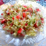 Отлично соединились в нем крабовые палочки и зерна граната, основой послужила пекинская капуста. И, конечно же, заправка с добавлением соевого соуса от Киккоман. Вкусно, красиво, празднично! Угощайтесь.