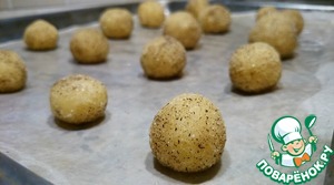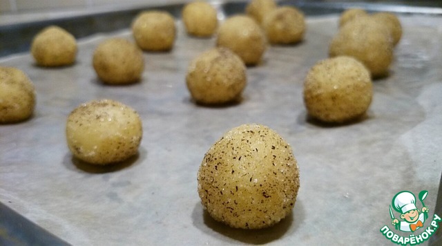 Шарики размещаем на противне на большом расстоянии друг от друга - они будут прилично расползаться. Запекаем их в предварительно прогретой до 180 градусов духовке 10-15 минут. Маленькие печенья лучше вытащить минут через 8. Если передержать, печенье будет более хрустящее.