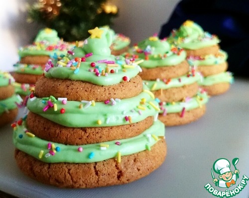 Новогоднее печенье с кремом "Ёлочки"