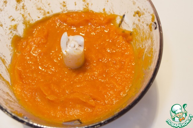 3. Достаем из духовки тыкву, сливаем жидкость и пюрируем овощ