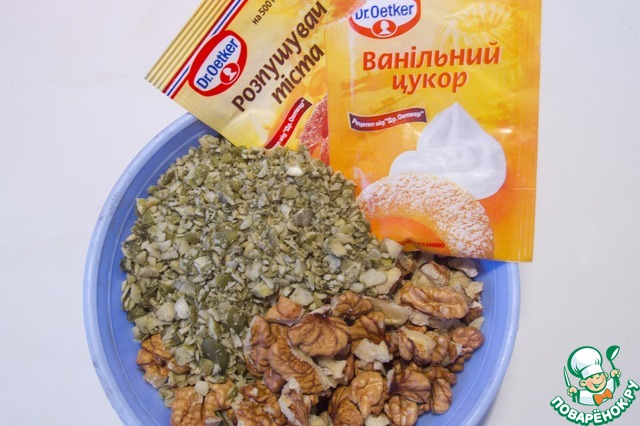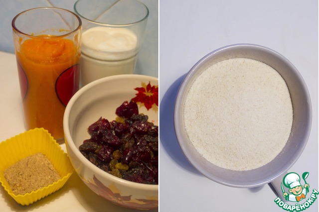 Ингредиенты для «Тыквенный манник с орехами и сухофруктами»: