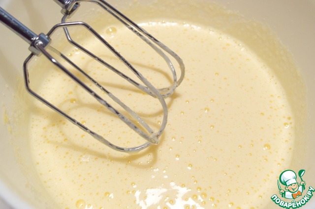5. Пока манка напитывается ароматной тыквенно-молочной смесью, подготовим яичную массу. Для этого взобьем вместе сахар и охлажденные яйца. Побелели и увеличились в объеме? Готово Можно выключать миксер и включать духовку на 180 градусов, если вы ее успели выключить :)