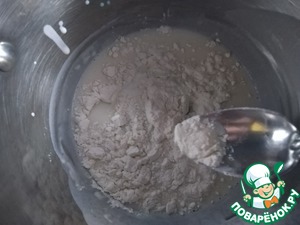 Тем временем в отдельной кастрюльке разводим муку в теплом молоке. Добавляем к бульону помешивая. Я воспользовалась маленьким ситечком, чтобы уж наверняка было без комочков.