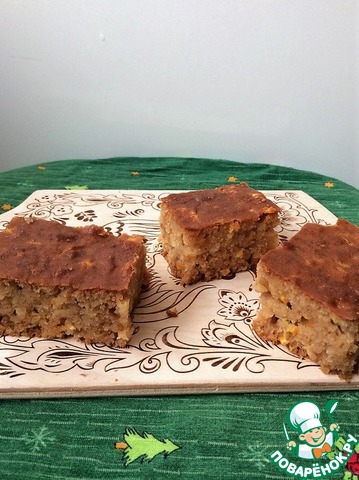 Нарезаем кекс на квадратики (ромбики). Посыпаем измельченными орехами или кокосовой стружкой на свой вкус.