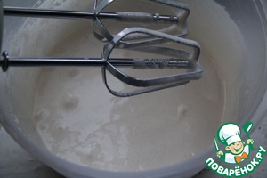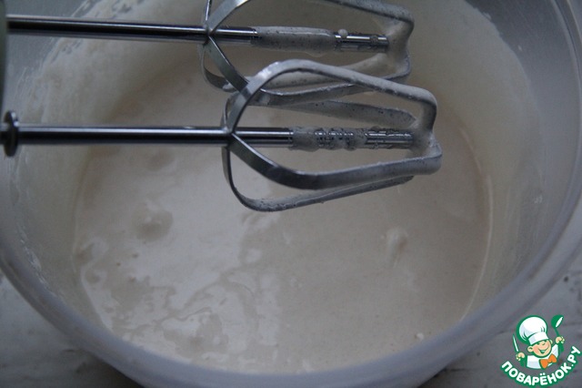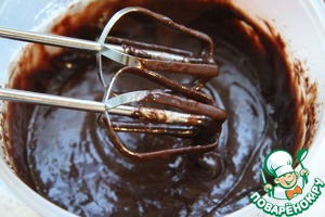 Продолжая взбивать, тонкой струйкой ввести масляно-шоколадную смесь.