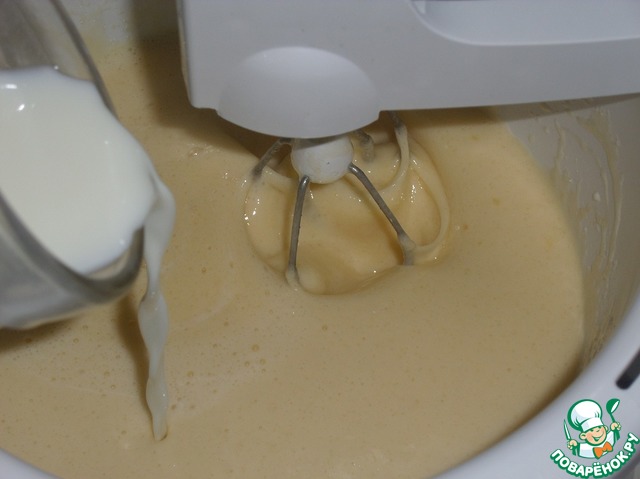 Добавляем молоко. Взбиваем до однородного состояния.
