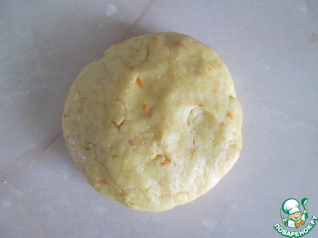 Собрать массу в шар, завернуть тесто в пищевую пленку и убрать в холодильник на полчаса.