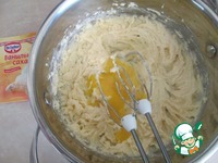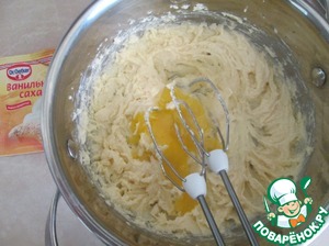 Добавить по одному яйца, взбить миксером. |