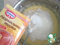 Добавить просеянную муку и разрыхлитель для теста. |