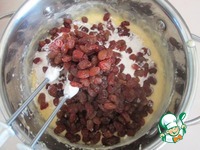 Всыпать предварительно отжатый изюм прямо в муку. |