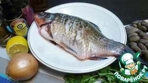 Подготовим продукты по указанному списку. Рыбу выпотрошить, почистить, хорошо помыть. У меня довольно крупный карась, которым можно наесться вдвоем.