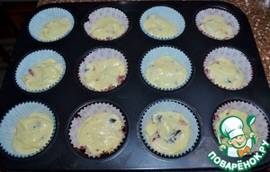 Разложить тесто в кексовые формочки, на 2/3 объема.