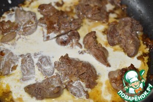 На сливочном масле обжарить лук, добавить печень. Обжарить.