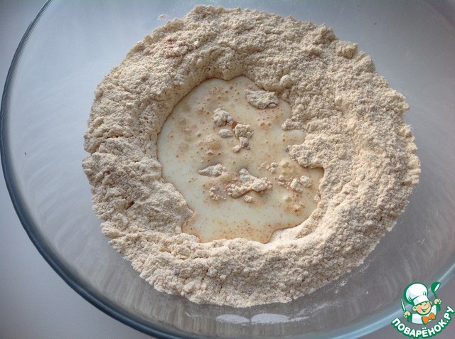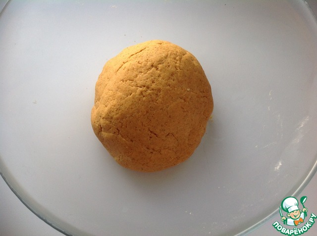 Замесить тесто. Завернуть в пищевую плёнку и убрать в холодильник на 30 минут.