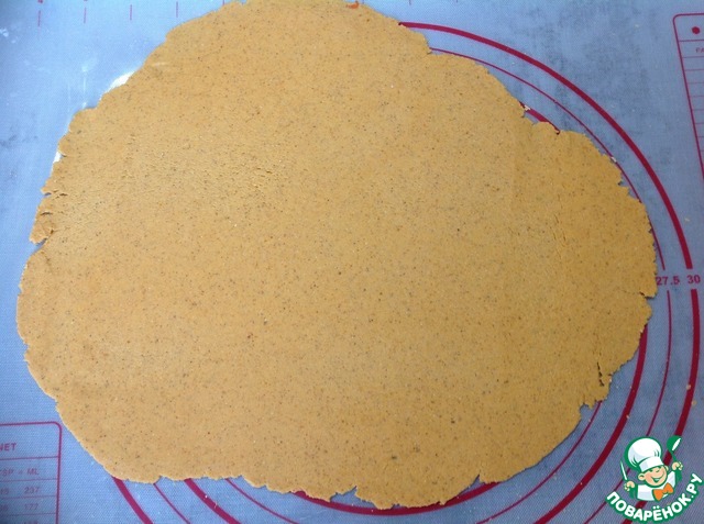 Нарезать на треугольники или квадраты и переложить на противень, застеленный пергаментом. Я ничем пергамент не смазывала.