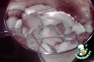 чистим осьминога и режем на крупные куски.