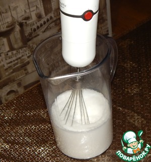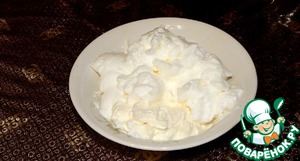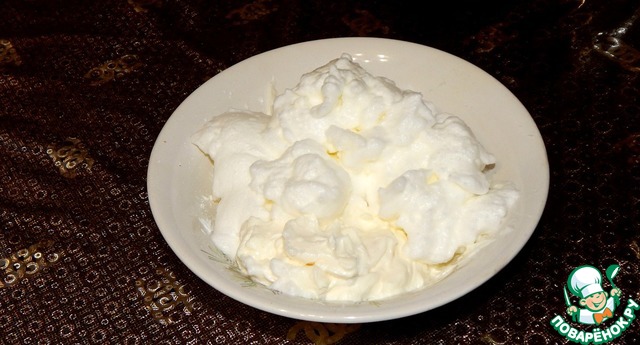 Взбитые белки выложила к творожному сыру, смешанному с кукурузным крахмалом и осторожно снизу вверх перемешала.