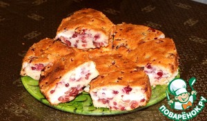 Очень нежный, ароматный и красивый кекс. Ягоды насыщают его своими вкусовыми качествами и витаминами, придают кексу легкость. Прослойка из творожного сыра со взбитыми белками замечательно смягчает кекс, лишая его сухости.