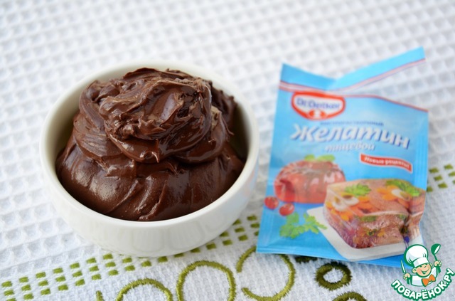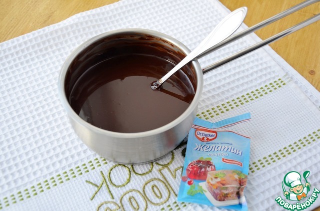 • Добавить в горячую сливочно-желтковую массу поломанный шоколад, размешать до однородной массы. В охлажденный кофе добавить желатин "Dr. Oetker", размешать, нагреть до растворения желатина (не кипятить), Влить горячий кофе с желатином в шоколадную массу, тщательно размешать.