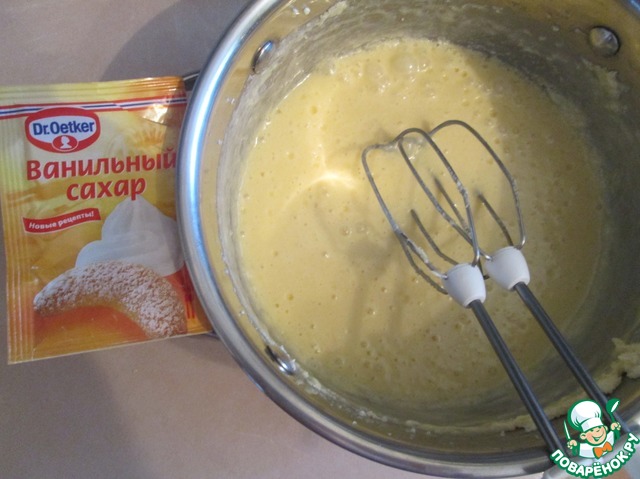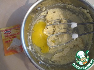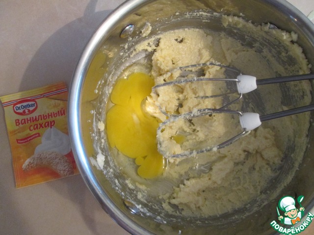 Сливочное масло взбить с сахаром и ванильным сахаром. -