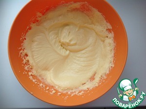 В миске растереть размягченный маргарин с сахаром.