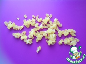 Лимонные цукаты мелко нарезать и смешать с крахмалом.