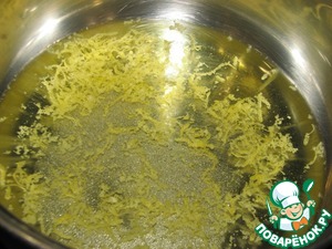 Воду влить в сотейник, добавить сахар и цедру лимона. Проварить в течение 3-5 минут.