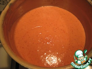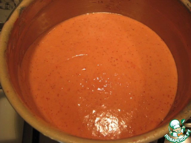 Поставить кастрюлю с брусничным пюре на водяную баню, добавить яичную смесь, готовить на небольшом огне до загустения крема. Крем накрыть пищевой пленкой, чтобы она касалась крема, крем остудить.