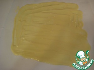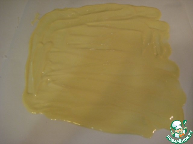 На лист бумаги для выпечки нанести слоем белый шоколад.
