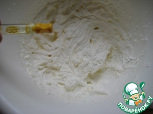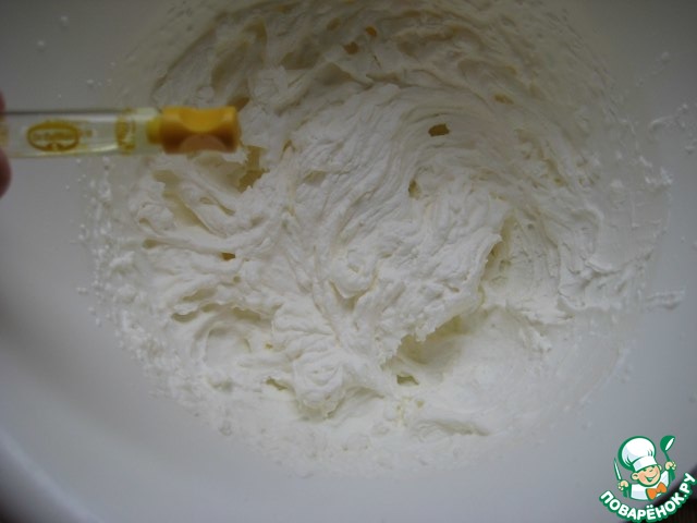 Холодные сливки взбить с несколькими каплями ванильной эссенции.