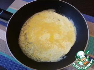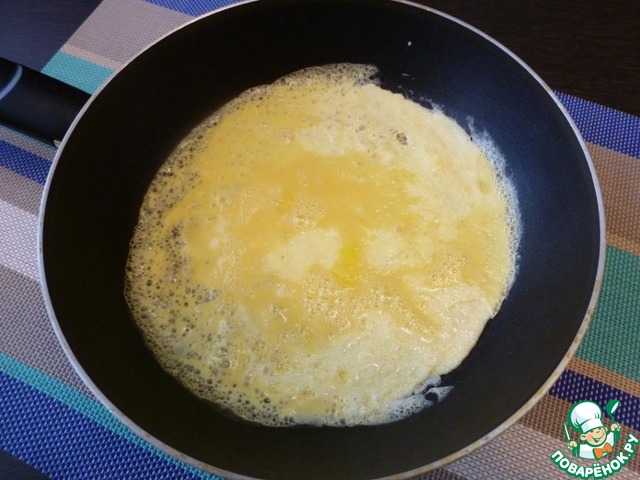 Пожарим омлет. Когда остынет, нарезать его соломкой.