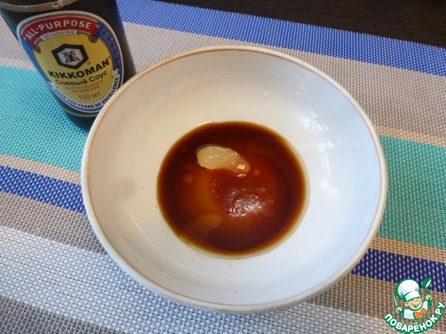 Для кимбапа приготовим соус Для него смешать соевый соус Киккоман, сладкий соевый соус (можно заменить на жидкий мед по вкусу), кунжутное масло и чили-соус.